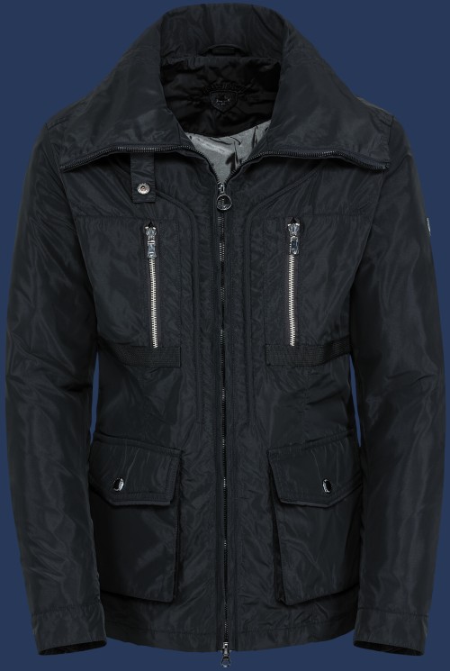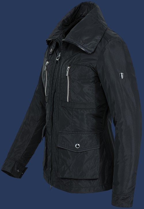 Kétirányú cipzár, foltos zsebek, belső zseb, légáteresztő, kapucni nélkül, varratlan, vízlepergető, széltaszító