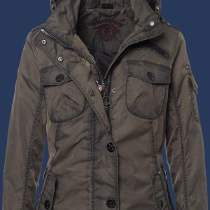 Robustes Polyamid-Gewebe im used Look. Dieser Oberstoff wurde in einem Grundfarbton hergestellt, um danach als Fertigteil in einem fünfstufigen Prozess überfärbt und gewaschen zu werden. Hierdurch wurde die gewollte „used Optik“ erzielt. Farbschattierungen und Farbunterschiede speziell an den Nähten, Taschen, dem Jacken Logo und dem Reißverschluß-Anhänger machen eine Jacke aus SprayTec einmalig und geben Ihr den charakteristischen Vintage Look. Pflegeleicht und maschinenwaschbar bei 30° C.